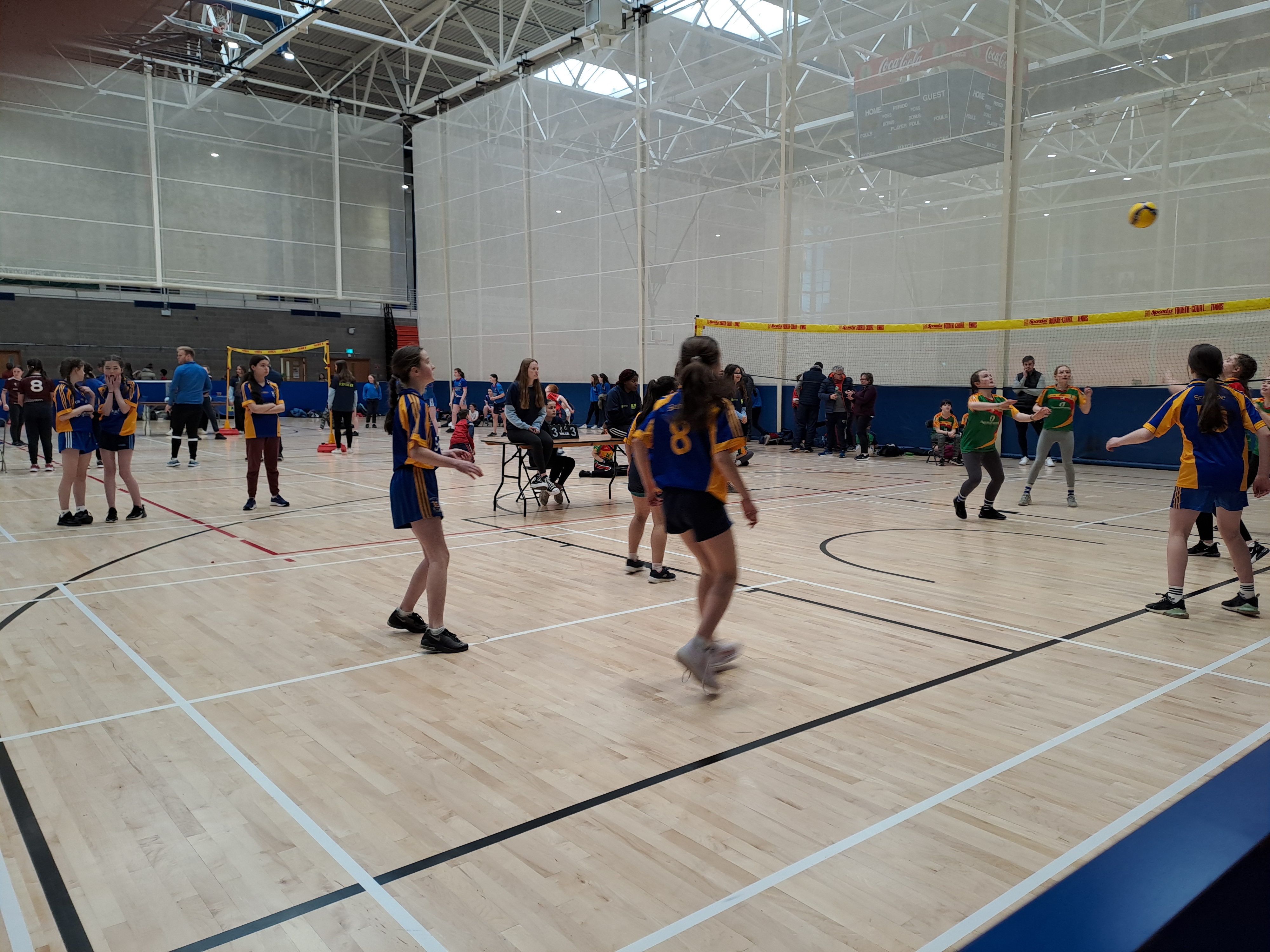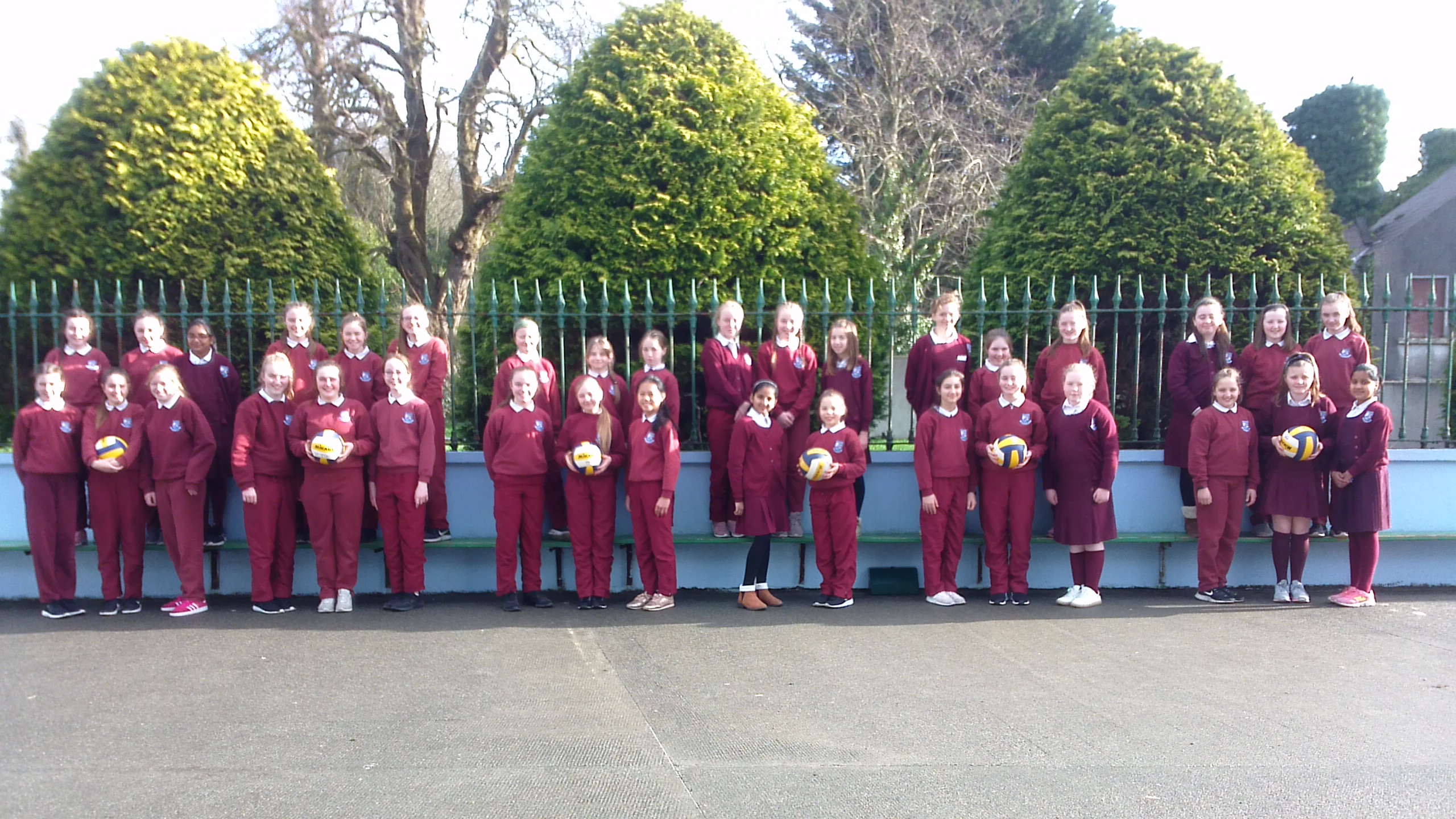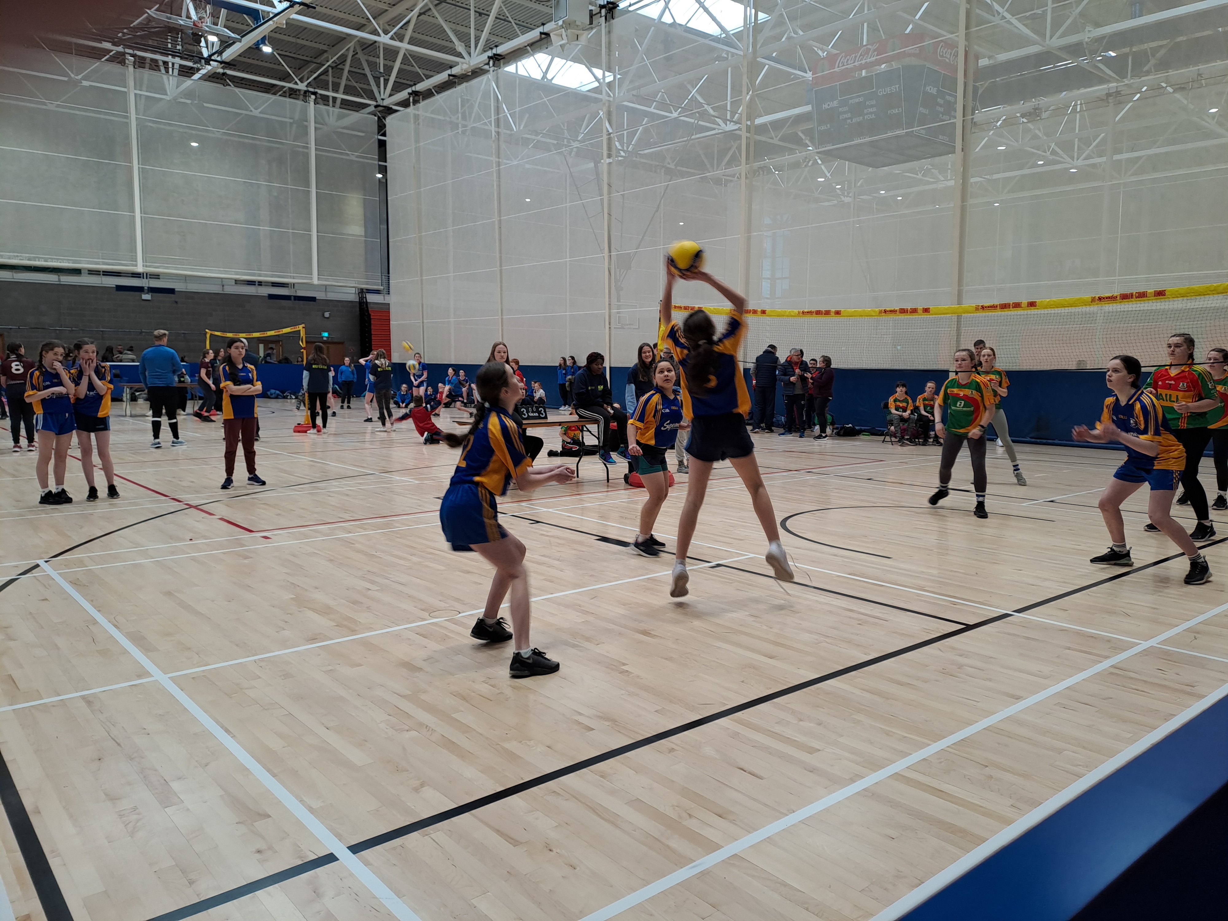 23rd Feb: Five teams from our sixth classes took part in the primary county volleyball tournament in Ballinasloe this week. Each team did extremely well and had lots of fun. It was a very competitive day as only one team could qualify for the All-Ireland competition. One of our teams were successful and will represent the school in Limerick next week! All the girls had a great day out. Thank you to all the girls, all our teachers and Mr Coyle, who helped prepare the girls for the competition. Check out some of the photos below!